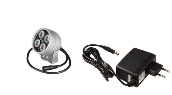 Zusätzliche Infrarot-Beleuchtung - verbessert die Reichweite auf 15m und die Schärfe; 6W - 12 V (Netzgerät inkludiert), 90 Grad Lichtbreite, -10 bis +40 GradC.